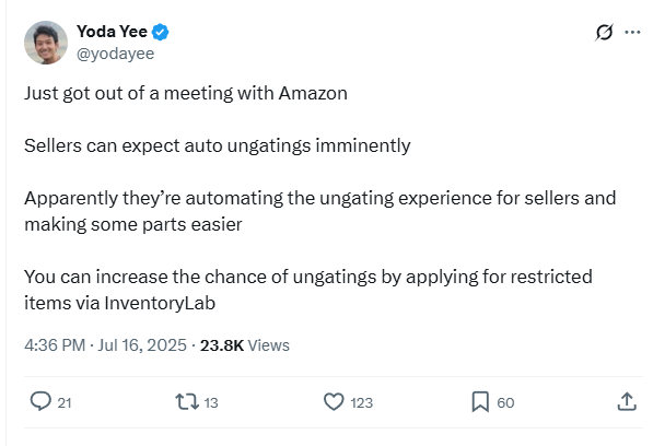 1. Many people have reported being able to sell through inventory they already had in stock after they were advised they would be gated on it (this almost never happens with traditional re-gating's).